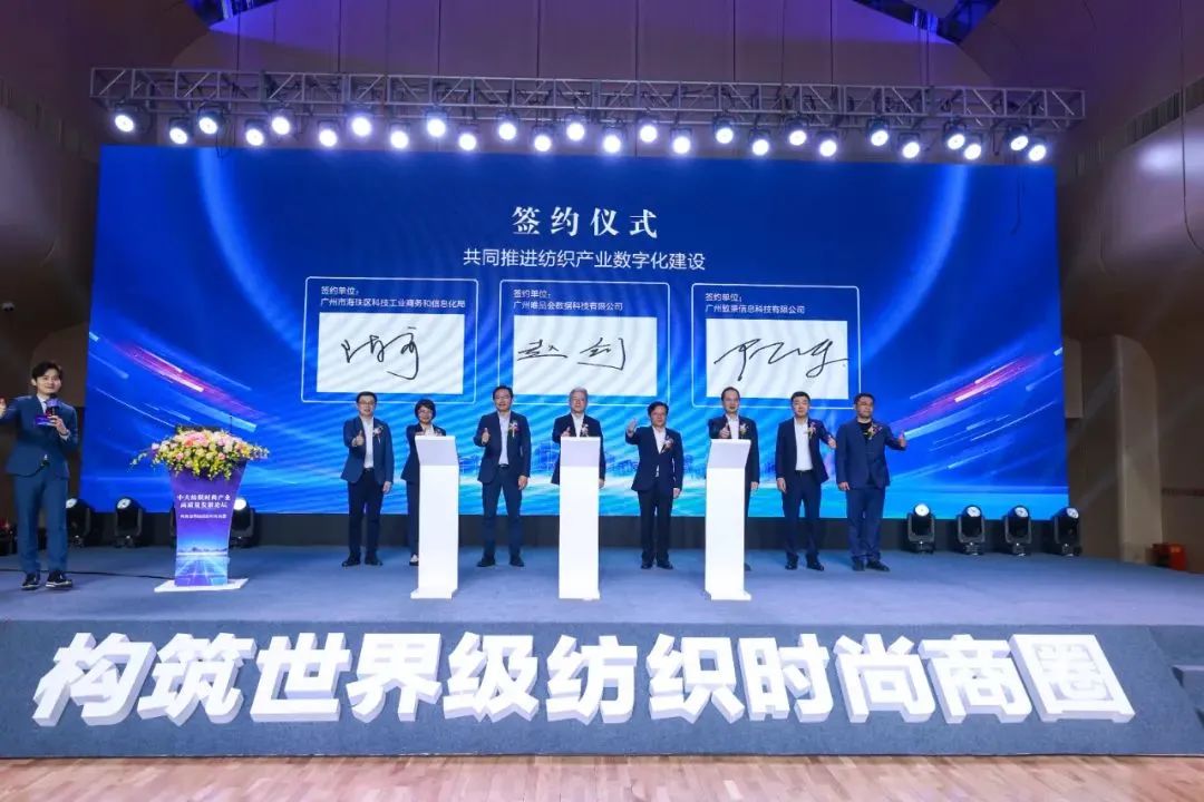 会上,海珠区科技工业商务和信息化局先后与中国纺织工业联合会流通分会、广州唯品会数据科技有限公司、广州致景信息科技有限公司、广州市例外服饰有限公司等企业签署战略合作协议,各方将结合各自专业领域优势,共同为建设中大纺织时尚产业世界级消费商圈、推进纺织产业数字化建设赋能加码、保驾护航。