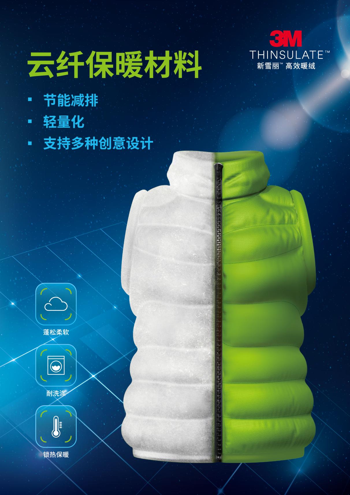 今天,全球首发的3M™新雪丽™云纤保暖材料全方位展示了3M科技赋能循环经济和科技赋能气候的理念,以可持续发展为引领,为服装设计师提供更加宽广的设计途径,其应用场景的不断延伸正在推动着纺织服装企业的突破与创新。