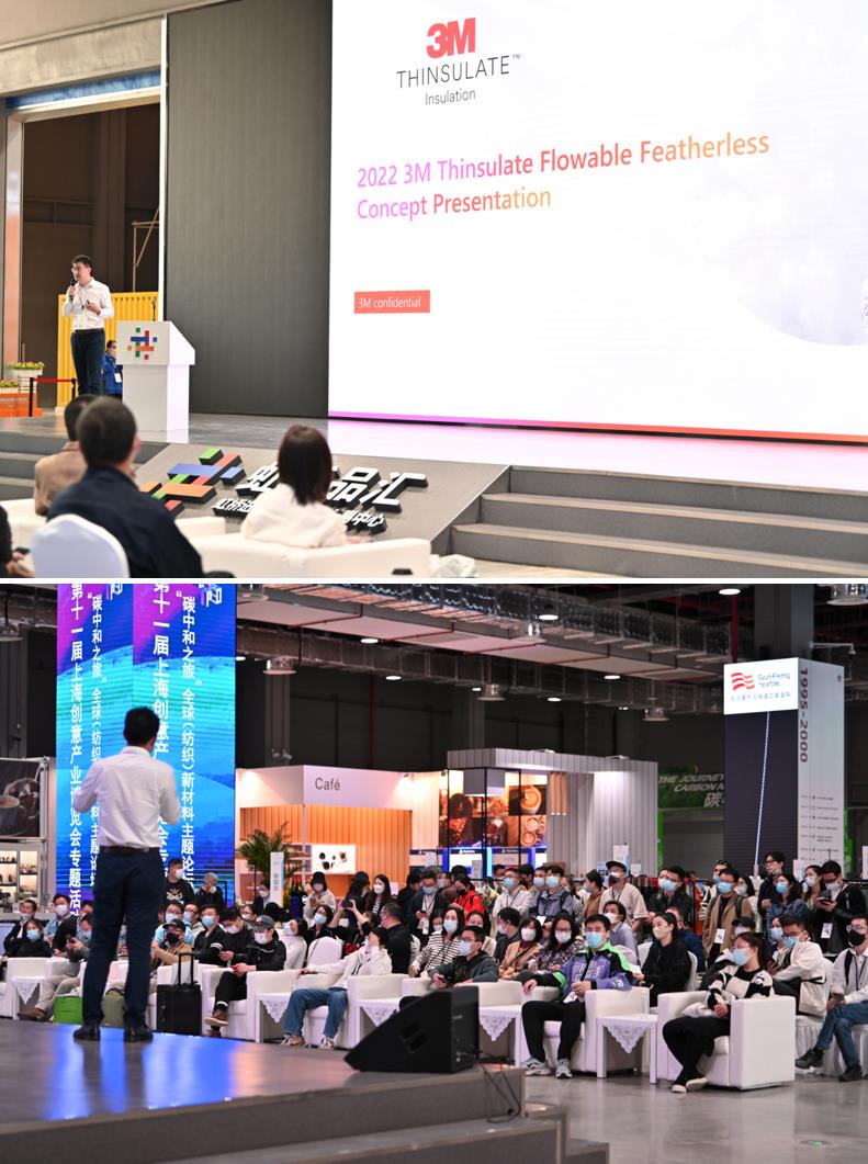 现场,3M高级工程师Steven Shi进行了精彩演讲,运用3M™新雪丽™的科技语言描述了3M™新雪丽™云纤这一新型科技保暖材料的产品内核以及功能特性,现场备受瞩目,给消费者带来可持续理念的同时,也启发和引导品牌可持续融合发展的新路径。