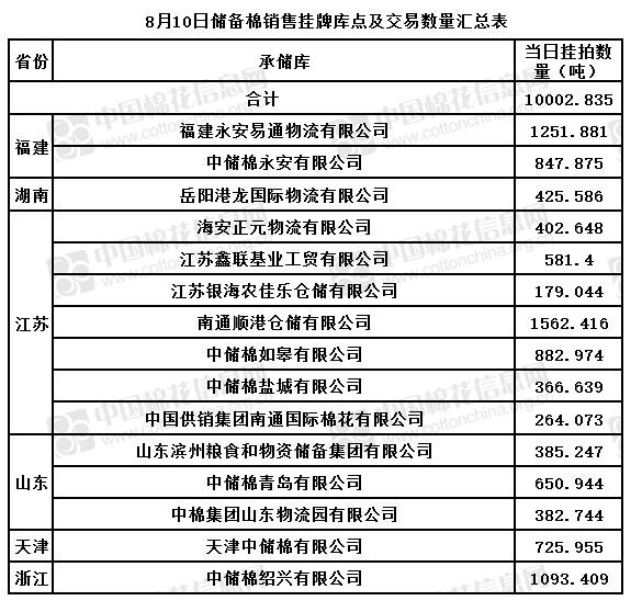 附件:1、8月10日上市销售储备棉数据明细表(进口棉)