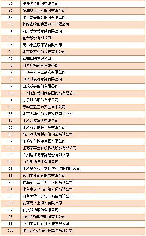 需特别说明,“中国服装行业百强企业”名单由中国服装协会基于客观公正的原则,在会员企业中依据第三方审计报告财务数据进行独家发布,此项工作一直遵循企业自愿参与的原则,属无任何收费的行业工作。中国服装协会从未直接组织、委托授权组织或者合作组织以“中国服装行业百强企业”名义进行收取费用的表彰、发布或媒体宣传活动,欢迎行业企业和社会各界监督并提出宝贵建议。
