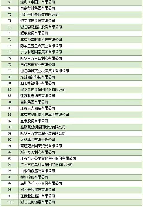 2023年7月31日,中国服装协会正式发布“2022年服装行业百强企业”名单。