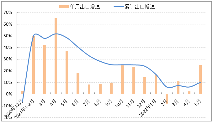 随着稳外贸政策持续加码及企业复工复产稳步推进,在国际市场需求稳定恢复、物流堵点逐步打通及前期积压订单加速释放等因素的有利带动下,我国服装出口增速大幅提升,重回两位数增长空间。据中国海关数据,5月服装及衣着附件出口151.99亿美元,同比增长24.9%,增速比4月提升22.5个百分点;1-5月我国累计完成服装及衣着附件出口622.16亿美元,同比增长10.2%,增速比1-4月提升4个百分点。