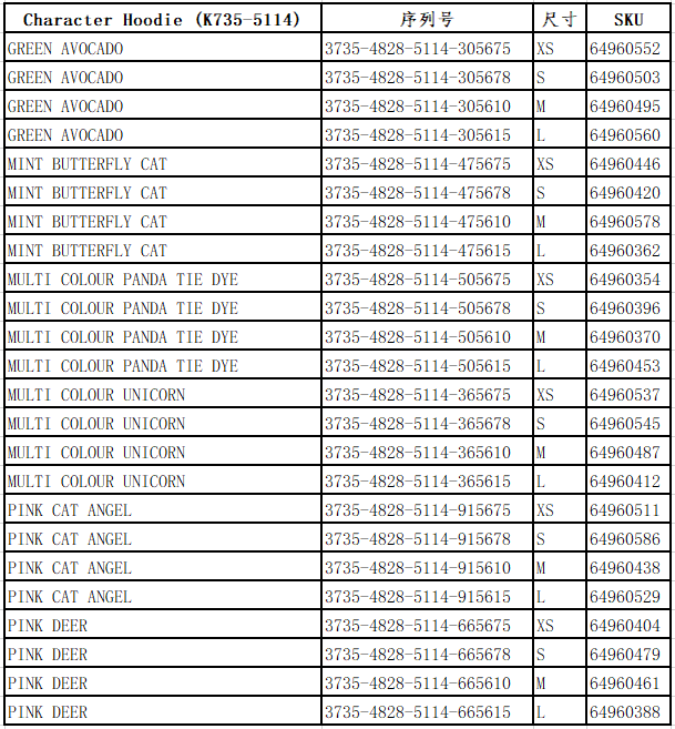 此次召回产品为Urban女童FunzietimeCharacter连帽衫。产品腰部有抽绳,尺寸为XS到L不等,有多种颜色和款色。具体召回产品信息如下: