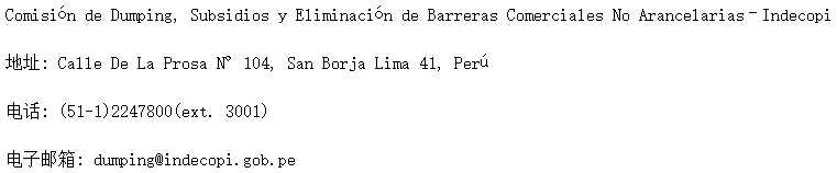 利益相关方可于本公告发布后的30个工作日内以登陆网站(网址:https://enlinea.indecopi.gob.pe/MDPVirtual2/#/inicio)或通信的方式(地址见下方)进行应诉登记、提交证据材料: