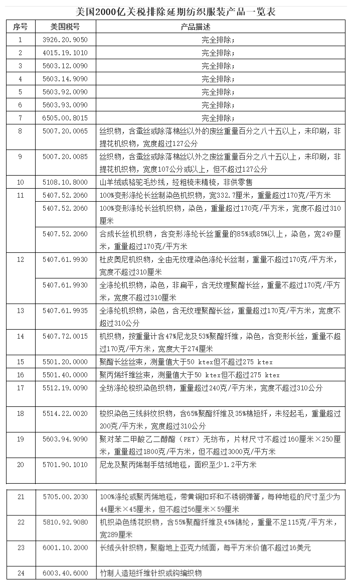 首页 面料 2000亿美元征税产品排除修订